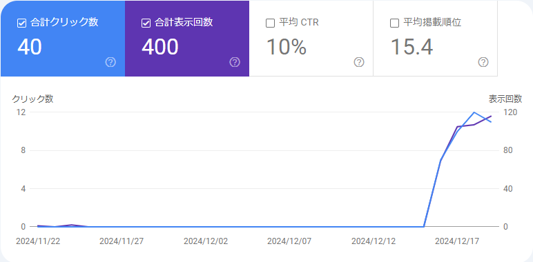 | 検索表示数(サーチコンソール) | 40クリック |